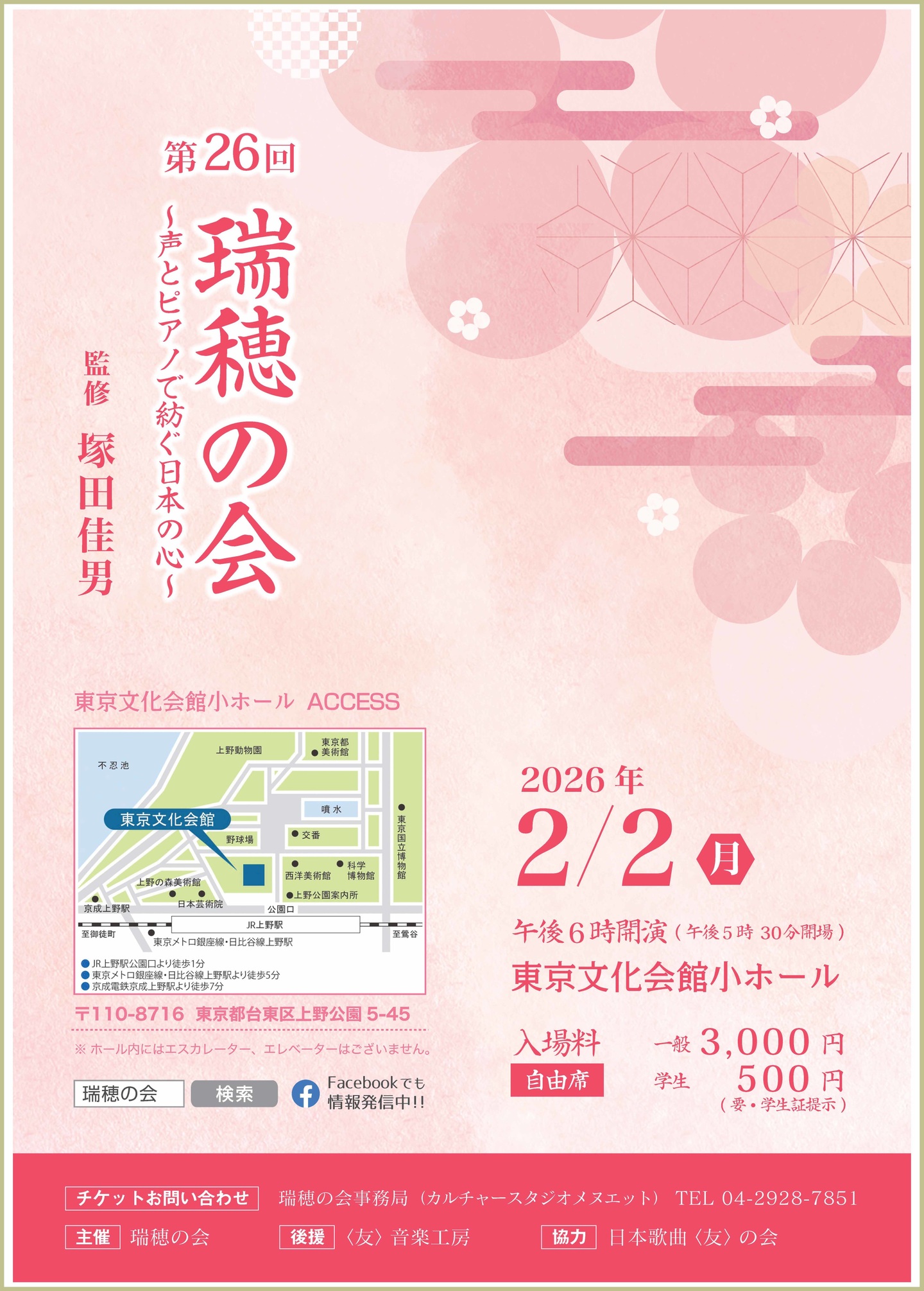 第26回 瑞穂の会 声とピアノで紡ぐ日本の心 監修:塚田佳男