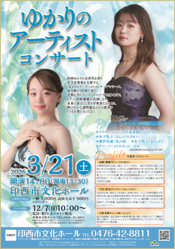 ◆会場 東京文化会館小ホール ◆料金 全席指定 ¥3,000