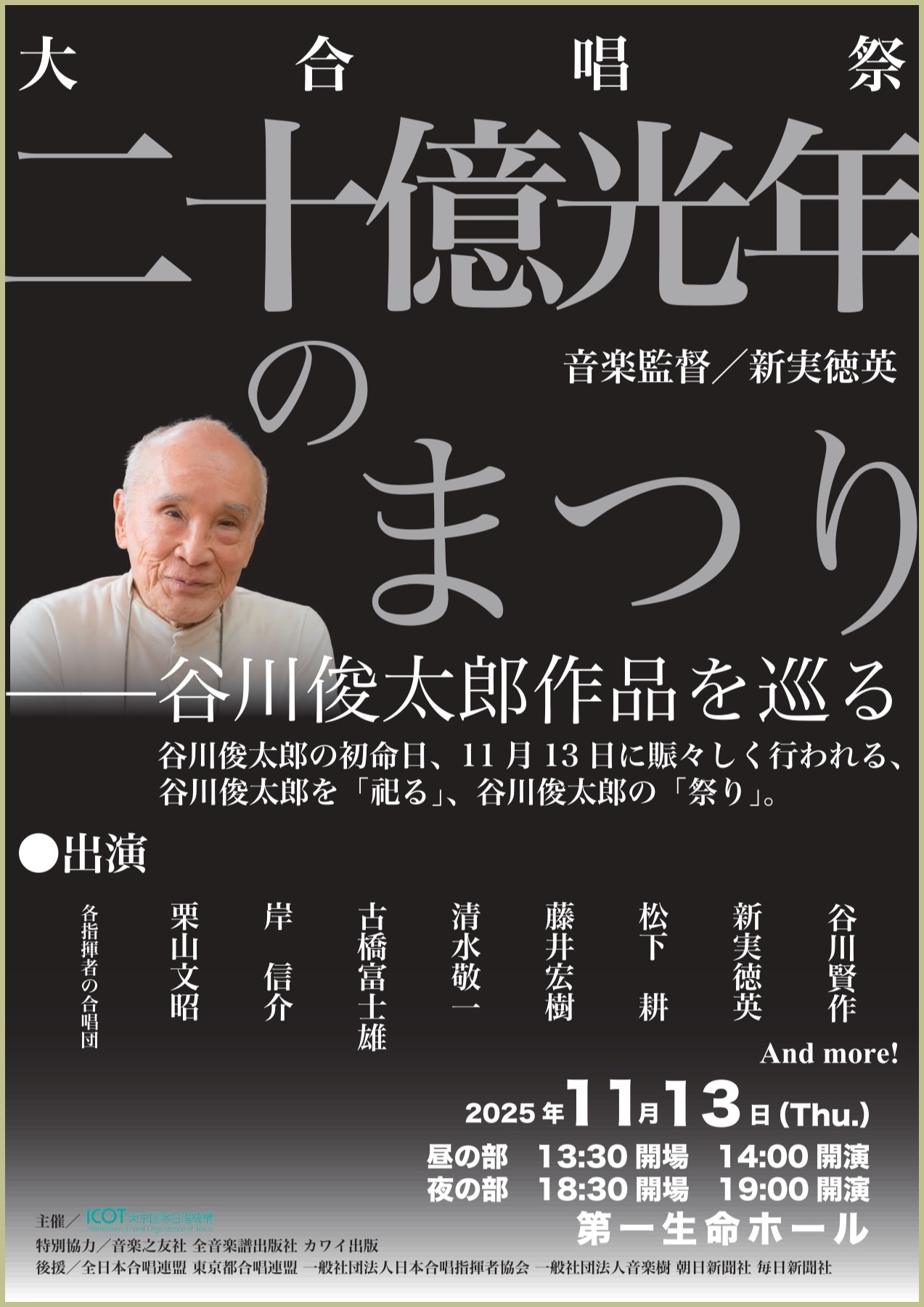 大合唱祭 二十億光年のまつり〜谷川俊太郎作品を巡る 音楽監督/新実徳英 New!