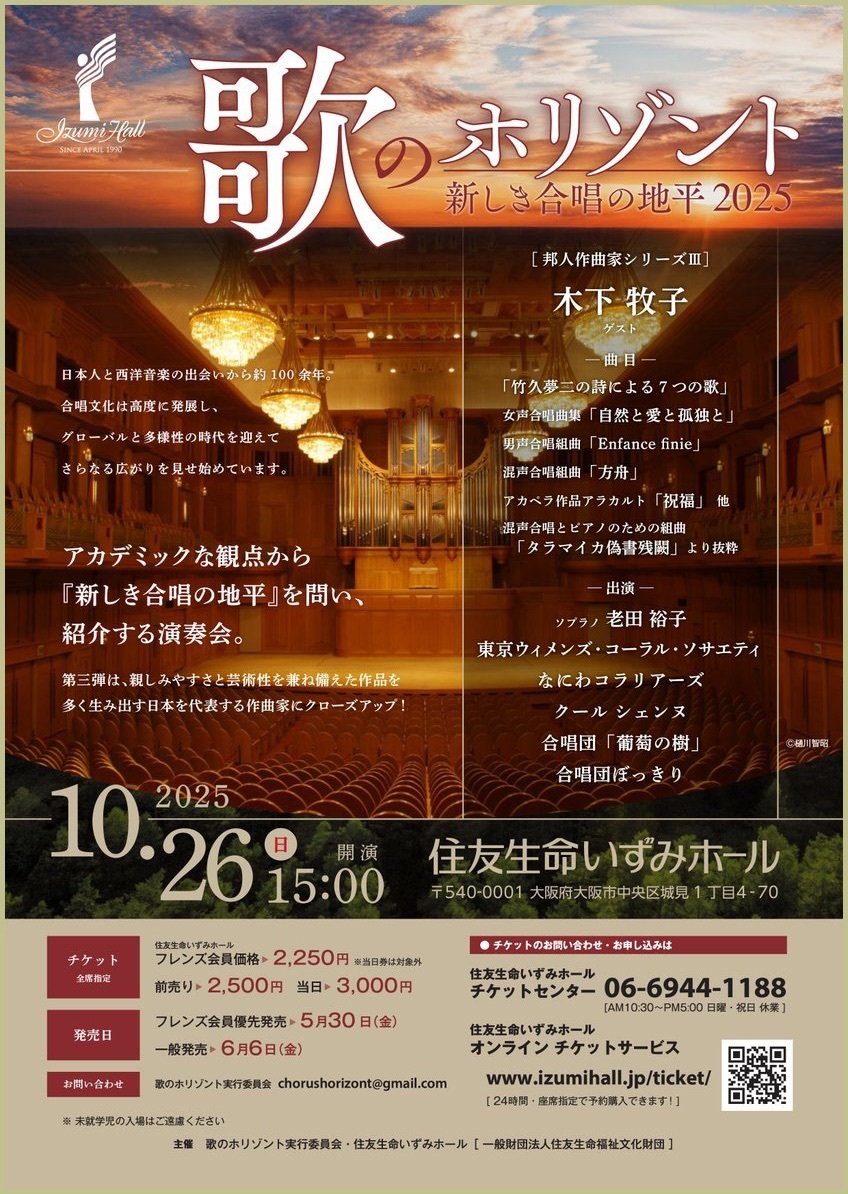歌のホリゾント〜新しき合唱の地平2025 邦人作曲家シリーズIII 木下牧子