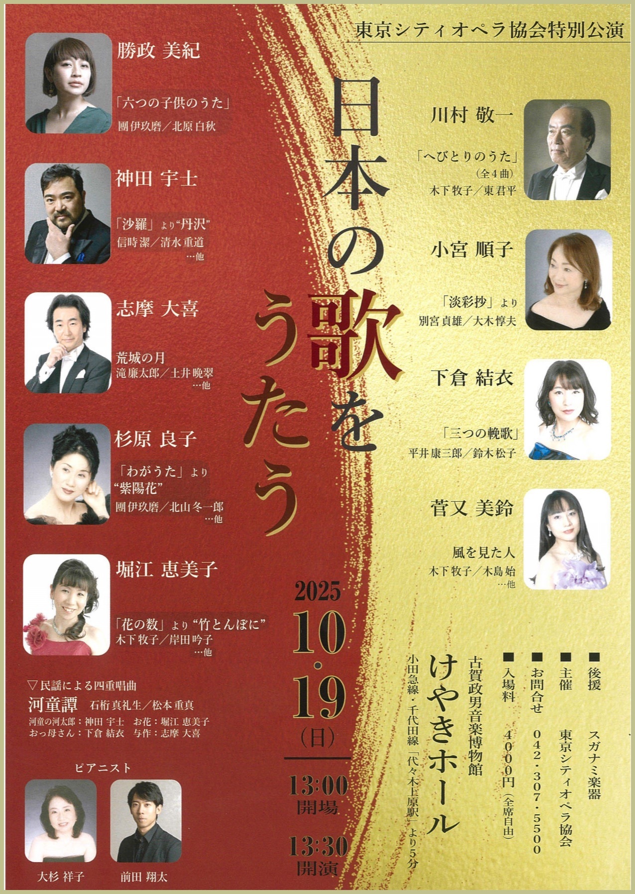東京シティオペラ協会 特別公演 日本の歌をうたう New!