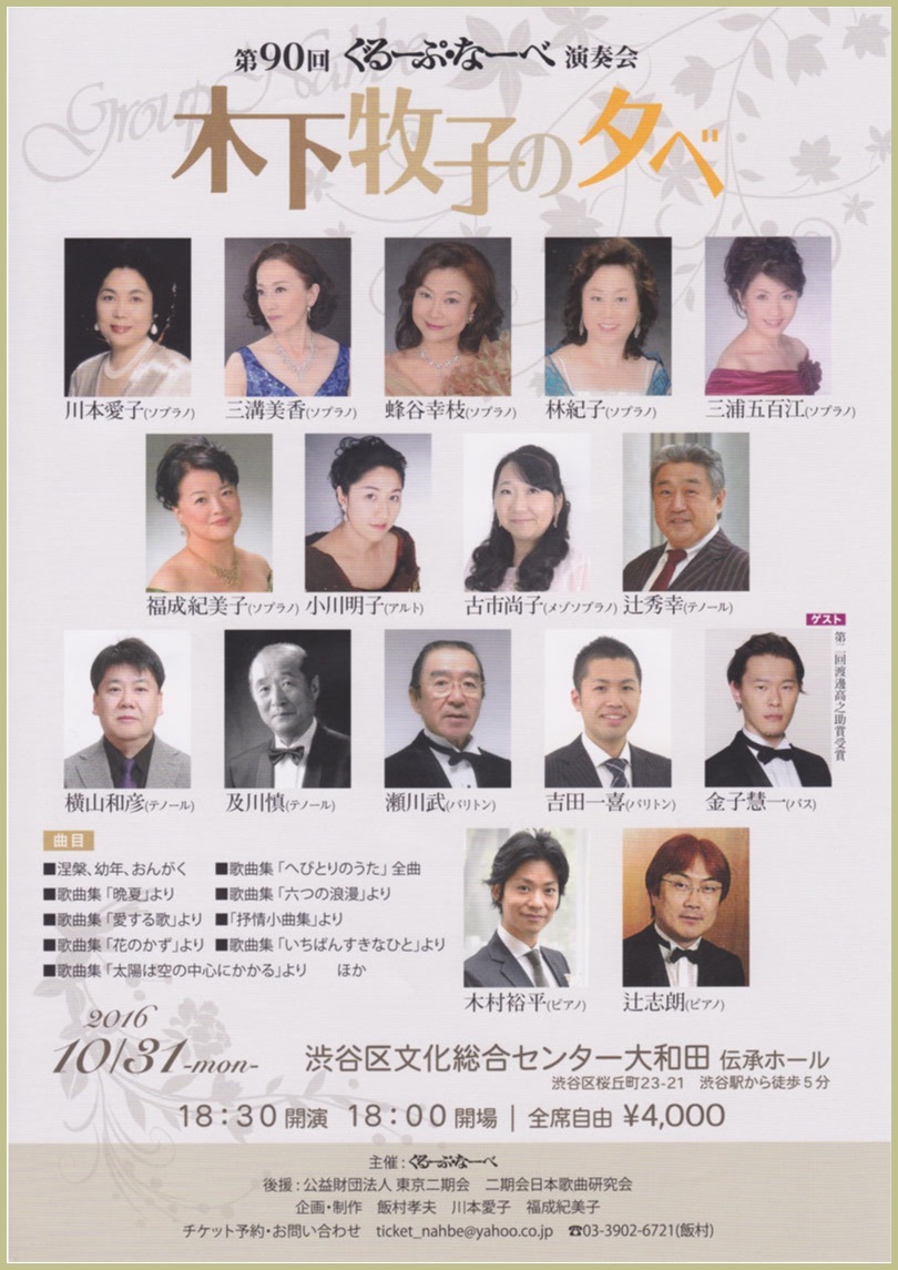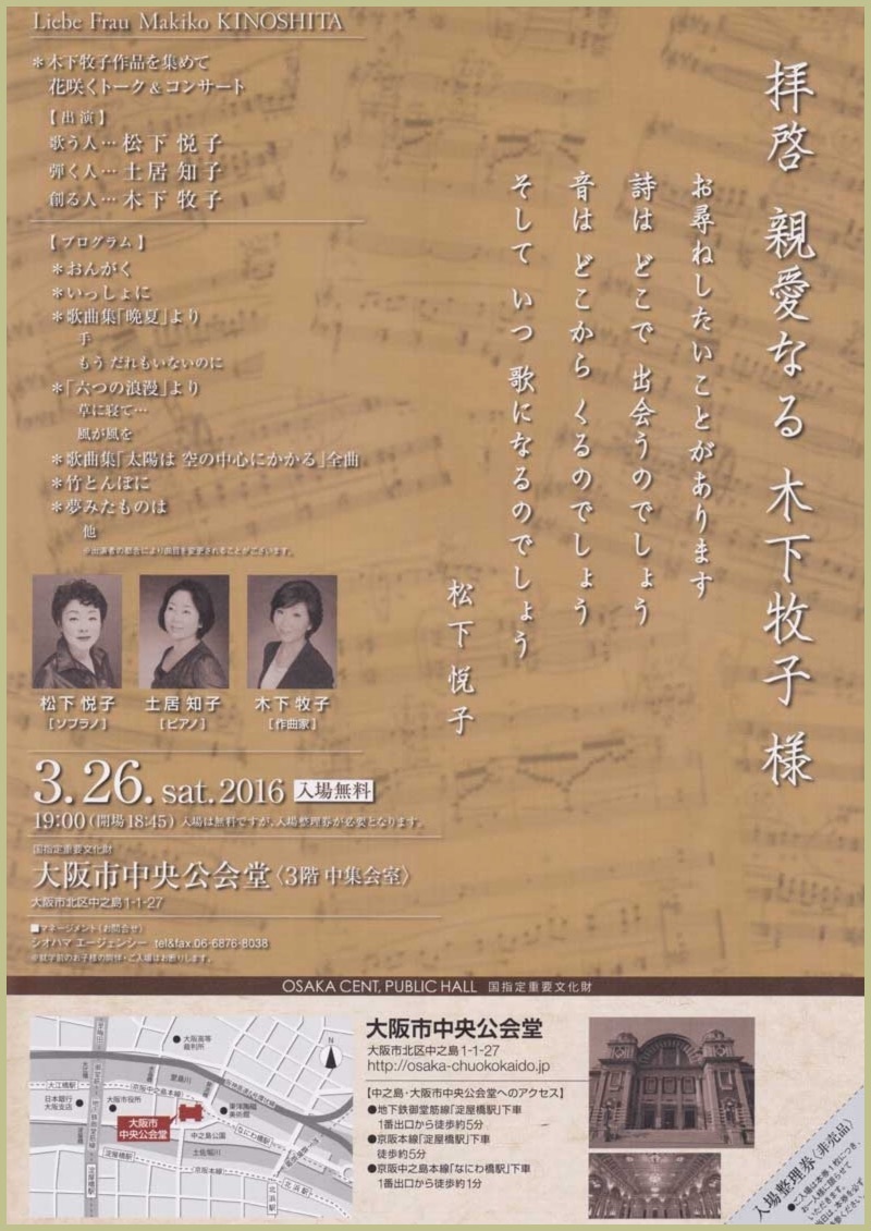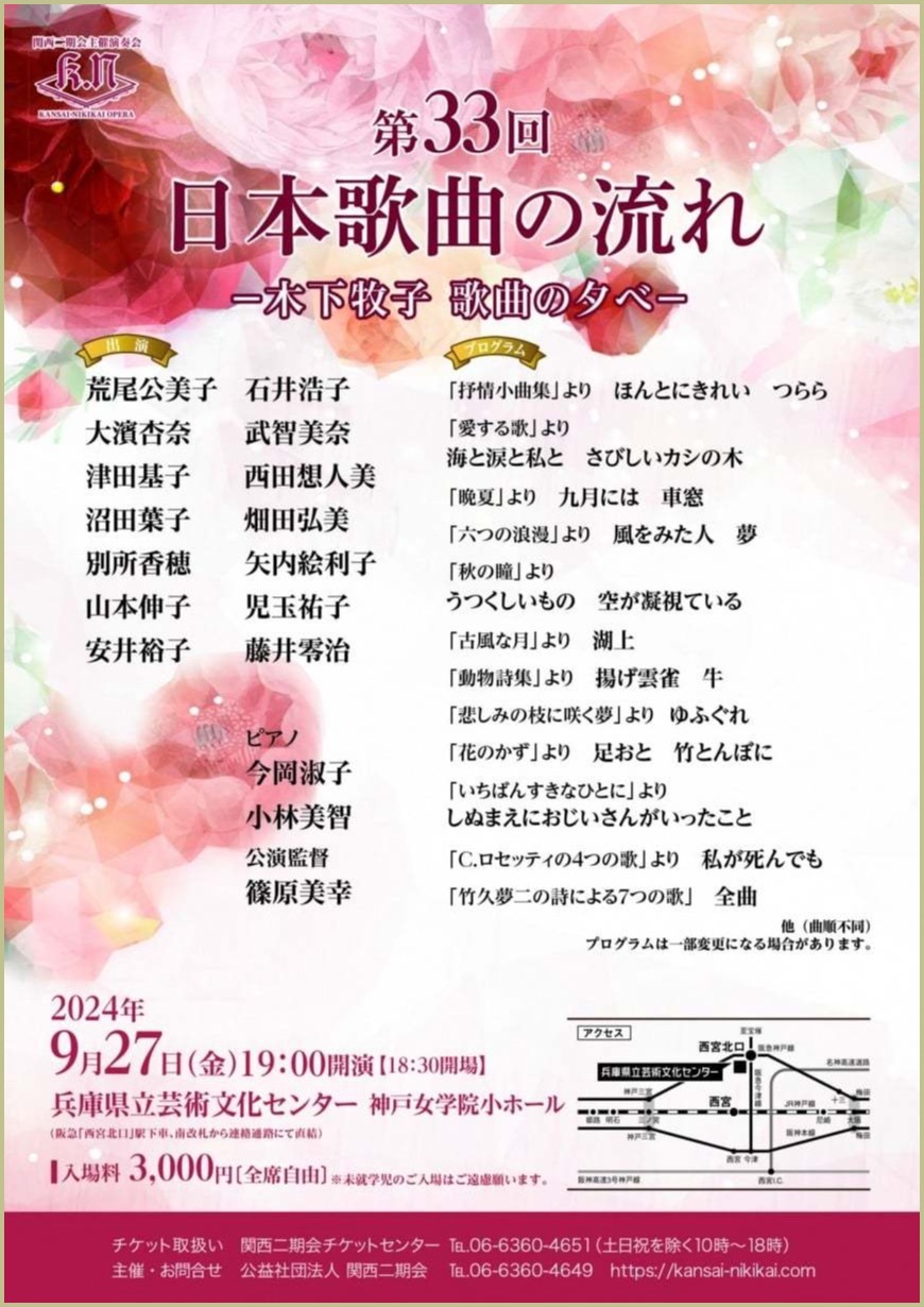 オ第33回日本歌曲の流れ 木下牧子 歌曲の夕べ 主催:関西二期会