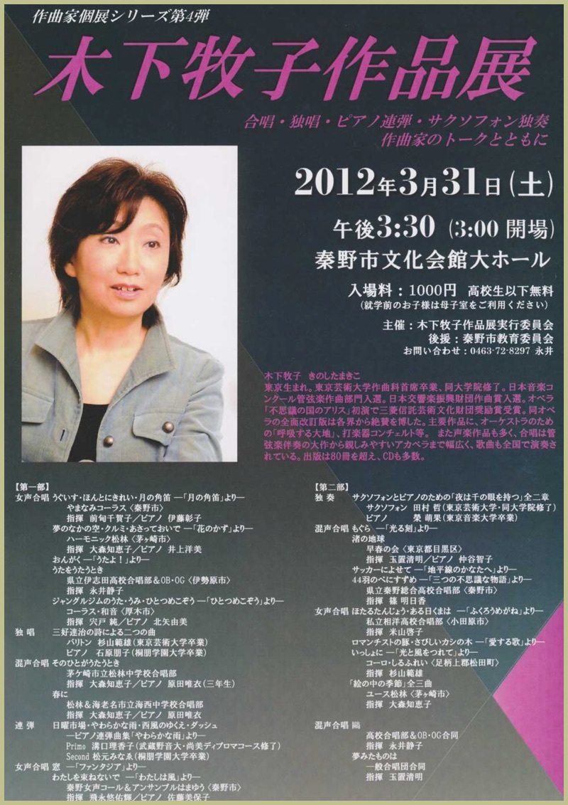 作曲家個展シリーズ第4弾 木下牧子作品展