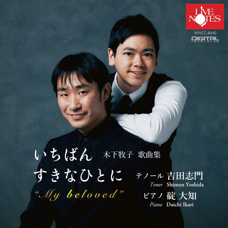 CD 2021〜 ※CDジャケットをクリックするとネットショップに飛びます。 2 0 2 5 T.吉田志門 Pf.碇 大知 いちばん すきなひとに〜木下牧子歌曲集 New! ●ライヴノーツ WWCC-8040 ●¥3,300(税込) ●発売日:2025.10.25【演奏】T.吉田志門 Pf.碇 大知【曲目】「抒情小曲集」より/「六つの浪漫」より/「愛する歌」より(以上 木下牧子)/無言歌集Op.17-1(G.フォレ)/「花のかず」より/「秋の瞳」より(以上 木下牧子)/無言歌集Op.17-2,3(G.フォレ)/「いちばんすきなひとに」全5曲(木下牧子)ボーナストラック2曲 2 0 2 4 S.豊田喜代美 貴志康一/木下牧子作品 New! ●フォンテック FOCD9898 ●¥3,080(税込) ●発売日:2024.5.15【演奏】S.豊田喜代美 Pf.渡辺健二 仲村渠悠子【曲目】赤いかんざし/かもめ/行脚僧/天の原/かごかき(以上 貴志康一)/モノオペラ「暁の星」(原作:夏目漱石 脚色&作曲:木下牧子) 2 0 2 3 PUZZLE/木下牧子ピアノ•デュオ作品集(Pf.大瀧拓哉 永野光太郎) ●ライヴノーツ WWCC-7994 ●¥2,500+税 ●発売日:2023.10.25【演奏】Pf.大瀧拓哉 永野光太郎【曲目】全作曲/木下牧子:「PUZZLE」2台ピアノのための / 「夜の時間」2台ピアノのための / 「迷宮のピアノ」(全6曲…愉快なシネカメラ ローラビーチ 夢の結果 夢 ティオの夜の旅 夜はけっしてじっとは) ワンダーランドリゲティ生誕100年と、久石譲 木下牧子 イェイロ ビンガム パターソン他の委嘱作品集 ●Signum Classics 輸入盤(国内流通仕様) ●¥3300 税込 ●発売日:2023.9.23【演奏】キングス・シンガーズ【曲目】ナンセンス・マドリガル集(リゲティ)、あしたのうた(木下牧子)、夢の中の夢(イェイロ)、I was there(久石 譲)、トリックスター(ビンガム)、タイム・ピース(パターソン)他 2 0 2 2 大嶺光洋 日本歌曲〜優しい歌たち ●ALM Records ALCD-7947 ●¥3,080税込 ●発売日:2022.6.7【演奏】Br.大嶺光洋 Pf.宮崎芳弥【曲目】星とたんぽぽ 夏の思い出 悲しくなったときは 他(中田喜直)、子守唄 花の街 ひぐらし 他(團伊玖磨)、びいび ある日 しぐれ に寄する抒情 他(大中 恩)、あやめの歌 糸繰り唄 他(湯山 昭)、栗の実 仔ぎつねの歌 かいがらのうた 他(三善 晃)、さびしいカシの木 ロマンチストの豚 他(木下牧子) 愛する歌 野々下由香里 ●ALM Records ALCC-7280 ●¥3,080+税 ●発売日:2022.6.7【演奏】S.野々下由香里 Pf.小倉貴久子【曲目】ゆりかご びいでびいで 中国地方の子守唄 椰子の実 かやの木山の 早春賦 出船 早春賦 ちんちん千鳥 舞 くちなし 他 歌曲集「愛する歌」全10曲(木下牧子) 石丸幹二 ORCHESTRA CONCERT 2022 ●ソニーミュージック SICL30067 ●¥3,300税込 ●発売日:2022.5.25【演奏】Vo.石丸幹二 Cond.円光寺雅彦 東京フィルーハーモニー交響楽団【曲目】愛と死の崘舞 僕の願い ネバーランド 真っ赤なスカーフ 君は薔薇より美しい ふるさとの赤い丘 民衆の歌 愛せぬならば 君の歌をもう一度 まだ終わりじゃない ひとかけらの勇気 鷗(木下牧子) 罪な遊戯 愛した日々に悔いはない 時が来た マイ・ウェイ 今この時 2 0 2 1 いのちのうた 藤木大地 ●KING INTERNATIONAL KKC-084 ●¥3,301 ●発売日:2021.11.20【演奏】CT.藤木大地 作曲/編曲.加藤昌則 Vn.成田達輝 小林美樹 川本嘉子 中木健二 Pf.松本和将【曲目】主よ、人の望みの喜びよ 怪物や魔物と合わせてくれ アデライーデ お客を招くのが趣味でね アヴェ・マリア ヴォカリーズ アニュス・デイ 私はこの世に忘れられた 神ともにいまして 鴎(木下牧子) いのちの歌 もしも歌がなかったら 他 鴎(シングル) ●ソニーミュージックSICL-30064~6 ●初回盤¥1,650(CD+DVD) 通常盤¥1,100(CD) ●発売日:2021.10.6【演奏】Vo.石丸幹二 Pf.中島 剛 Cond.円光寺雅彦 Orch.東京フィルハーモニー交響楽団 【曲目】「鴎」ヴォーカル+ピアノ版(作曲:木下牧子)/「鴎」Vo+オーケストラ版(作編曲:木下牧子)/「愛の讃歌」(M.モノー/フランス語版)CMタイアップ曲 彩美歌 木下牧子をうたう 〜アカペラ〜 ●ライヴノーツ WWCC-7947 ●¥2,500+税 ●発売日:2021.6.25【演奏】彩美歌 高島敦子 木下泰子 三宮美穂【曲目】全作曲/木下牧子:おんがく 鴎(彩美歌ヴァージョン)いっしょに にじ色の魚 ロマンチストの豚 さびしいカシの木 棗のうた 他 十人十色 三宅理恵 ●Studio N.A.T NAT19481 ●¥2,700+税 ●発売日:2021.1.20【演奏】S. 三宅理恵 Pf. 佐野隆哉【曲目】歌曲集「ニ番目に言いたいこと」全曲(なかにしあかね)、ナイチンゲールと薔薇(サン=サーンス)、うぬぼれ鏡(平井康三郎)、歌曲集「愛する歌」全曲(木下牧子) ページトップへ