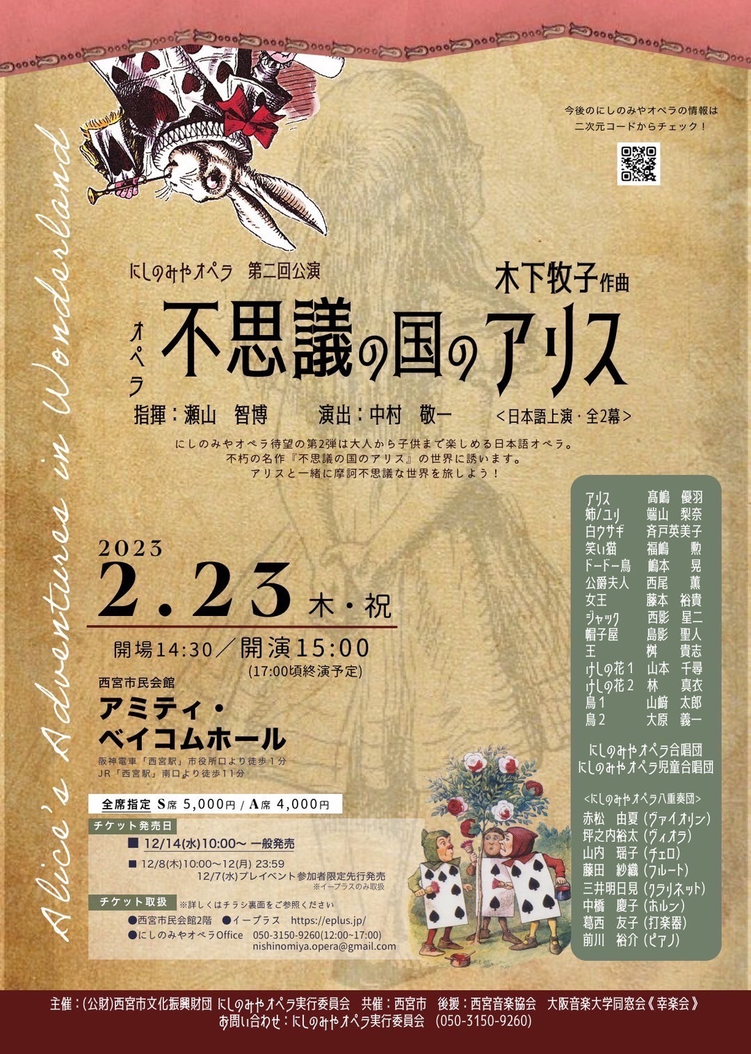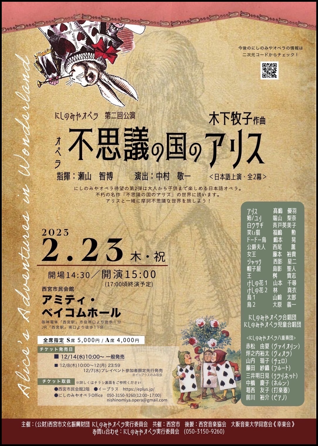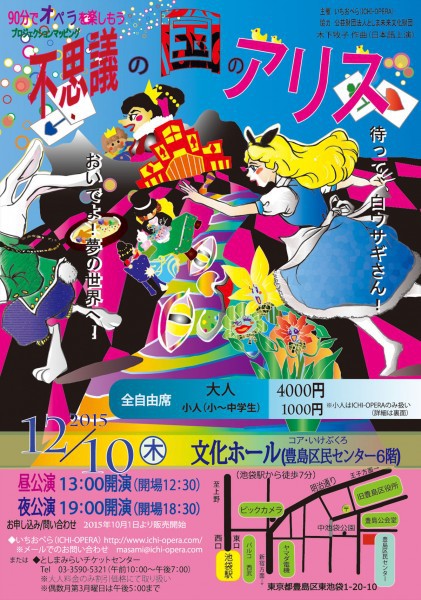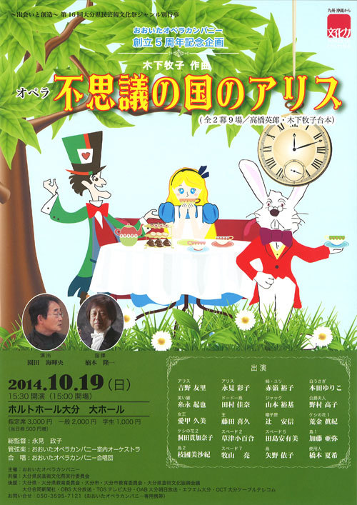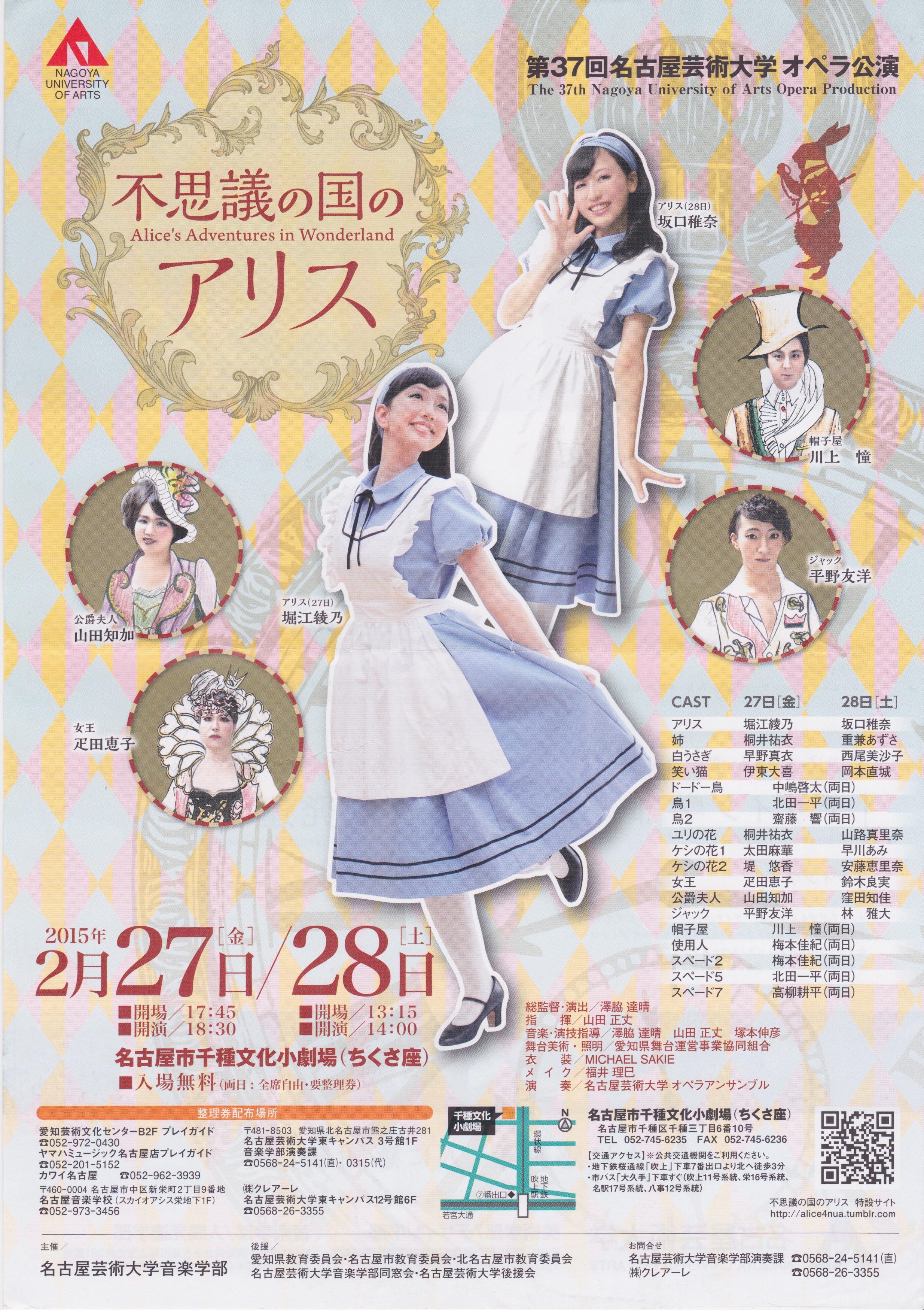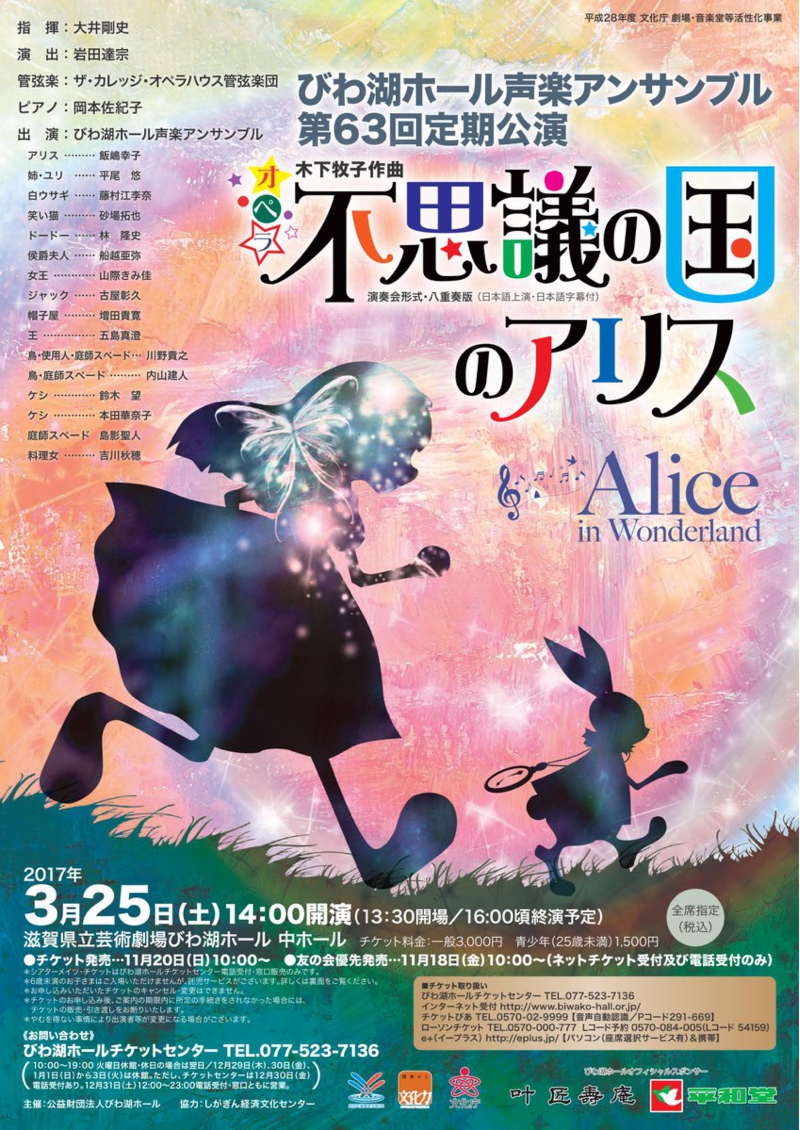 オペラ「不思議の国のアリス」ちらしコレクション(25) ※画像をクリックすると拡大します。 '24. 1/13 (土)昼,夜 1/14(日)昼,夜一般社団法人 奏楽会日経ホール演/中村敬一 指/平野桂子♦︎ ♦︎ ♦︎ ♦︎ ♦︎ '23. 11/19 (日)函館オペラの会函館市民会館大ホール演/中村勝男 指/阿部哲治♦︎ ♦︎ ♦︎ ♦︎ ♦︎ '23. 2/23(木/祝) にしのみやオペラアミティ•ベイコムホール演/中村敬一 指/瀬山智博♦︎ ♦︎ ♦︎ ♦︎ ♦︎ '22. 5/5 (木/祝) オペラカッフェマッキアート58滝野川会館大ホール演/塙 翔平 指/谷本喜基 ♦︎ ♦︎ ♦︎ ♦︎ ♦︎ '21. 12/5 (木) サラマンカホール主催サラマンカホール演/乃村健一 指/倉知竜也 ♦︎ ♦︎ ♦︎ ♦︎ ♦︎ '19. 8/12 (月/祝)にょほーオペラ東京コンサーツ・ラボ演/にょほーおぺら 指/町村 彰♦︎ ♦︎ ♦︎ ♦︎ ♦︎ '18. 8/11 (土)横浜シティオペラ横浜みなとみらい大演/中村敬一♦︎ ♦︎ ♦︎ ♦︎ ♦︎ '18. 6/30 (土) 昼,夜 7/1 (日) 午前,午後稲葉地オペラ振興会名古屋市東文化小劇場演/池山奈都子 指/柴田 祥♦︎ ♦︎ ♦︎ ♦︎ ♦︎ '17. 12/16 (土) 昼,夜横浜シティオペラ横浜みなとみらい小演/中村敬一 指/松田義生♦︎ ♦︎ ♦︎ ♦︎ ♦︎ '17. 11/23 (木) 昼,夜 11/24 (金) 夜 北海道二期会札幌市教育文化会館小演/齊藤雅彰 指/鎌倉亮太♦︎ ♦︎ ♦︎ ♦︎ ♦︎ '17.3/25 (土)びわ湖 H 声楽アンサンブル主催:びわ湖ホール演/岩田達宗 指/大井剛史♦︎ ♦︎ ♦︎ ♦︎ ♦︎ '16.8/21 (日)オペラ•ディ•ファミーユ静岡音楽館AOIホール演/澤井妃巳乃 指/野間春正♦︎ ♦︎ ♦︎ ♦︎ ♦︎ '15.12/10 (木) 昼,夜いちおぺら豊島区民文化ホール演/いちおぺら 指/松田義生 ♦︎ ♦︎ ♦︎ ♦︎ ♦︎ '15.12/5 (土) 昼,夜横浜シティオペラ横浜みなとみらい小演/中村敬一 指/増田宏昭♦︎ ♦︎ ♦︎ ♦︎ ♦︎ '15.3/26 (木) 午前,昼ピーターパン・プロジェクト町田市民フォーラム演/境 信博♦︎ ♦︎ ♦︎ ♦︎ ♦︎ '15.2/27(金)28(土)名古屋芸術大学名古屋市千種文化小劇場演/澤脇達晴 指/山田正丈♦︎ ♦︎ ♦︎ ♦︎ ♦︎ '14.12/20 (土)八重奏版 委嘱初演名古屋オペラ協会主催:サラマンカホール演/池山奈都子 指/倉知竜也♦︎ ♦︎ ♦︎ ♦︎ ♦︎ '14.10/19 (日) おおいたオペラカンパニーホルトホール大分大ホール演出/薗田幹輝夫 指/楠本龍一♦︎ ♦︎ ♦︎ ♦︎ ♦︎ '13.12/7(土) 昼,夜 12/8(日) 昼北海道二期会札幌市教育文化会館小演/齊藤雅彰 指/鎌倉亮太♦︎ ♦︎ ♦︎ ♦︎ ♦︎ '13.6/1 (土) 名古屋オペラ協会愛知県芸劇コンサートH演/池山奈都子 指/倉知竜也♦︎ ♦︎ ♦︎ ♦︎ ♦︎ '11.3/30 (水)大阪音楽大学学生自主堺市民会館大ホール演/村上智香 指/清水一生♦︎ ♦︎ ♦︎ ♦︎ ♦︎ '10. 8/22 (日)オペラ•ディ•ファミーユ静岡音楽館AOIホール演/小野初美♦︎ ♦︎ ♦︎ ♦︎ ♦︎ '09.12/5(土) 6(日) 東京室内歌劇場ル テアトル銀座演/鵜山 仁 指/大勝秀也♦︎ ♦︎ ♦︎ ♦︎ ♦︎ '05.9/28(水) 29(木)二管オケ版 改訂初演モーツァルト劇場めぐろパーシモン大演/鵜山 仁 指/大井剛史 ♦︎ ♦︎ ♦︎ ♦︎ ♦︎ '03.11/29(土)30(日)二管オケ版 委嘱初演モーツァルト劇場東京芸術劇場中演/鵜山 仁 指/大井剛史 ♦︎ ♦︎ ♦︎ ♦︎ ♦︎ ページトップへ