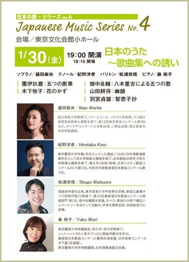 ◆演奏 S.盛田麻央 T.紀野洋孝 Br.松浦宗梧 Pf.森 裕子