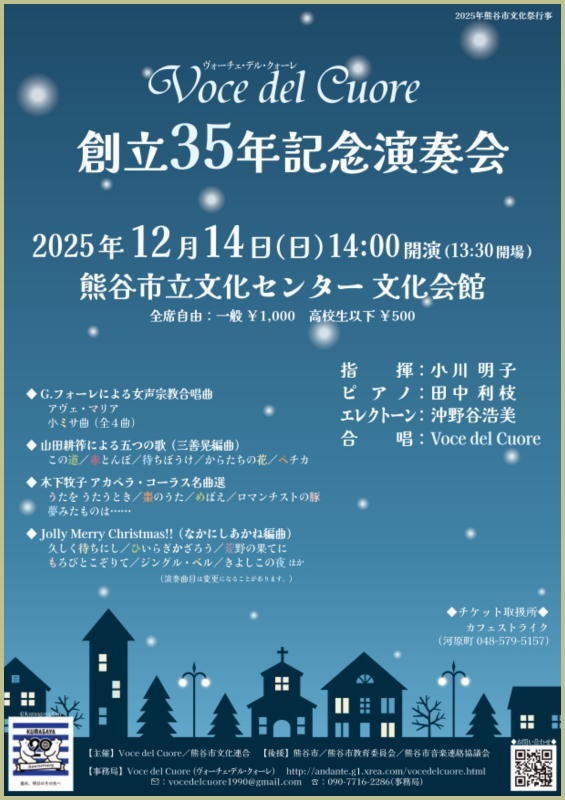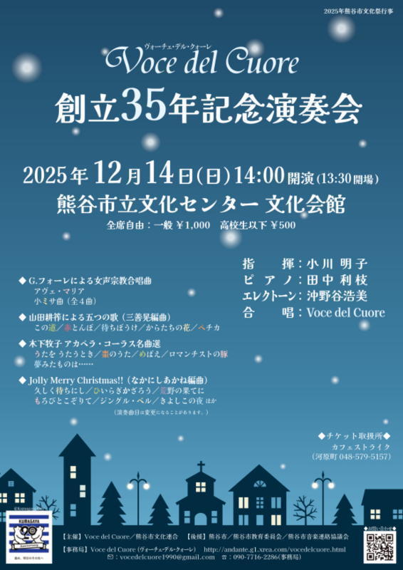◆会場 熊谷市文化センター文化会館 ◆料金 全席自由 一般¥1,000 高校生以下¥500