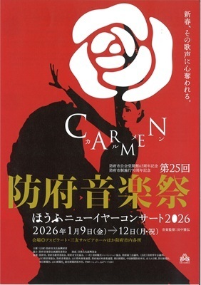 ◆演奏 S.三宅理恵 Ms.金子美香 T.宮里直樹 Br.萩原 潤 Pf.石野真穂 Vn.影山誠治 Fl.,松木さや、Ob.広田智之 Tp.高橋 敦 Chem.桑原奈緒子、防府音楽祭弦楽合奏団