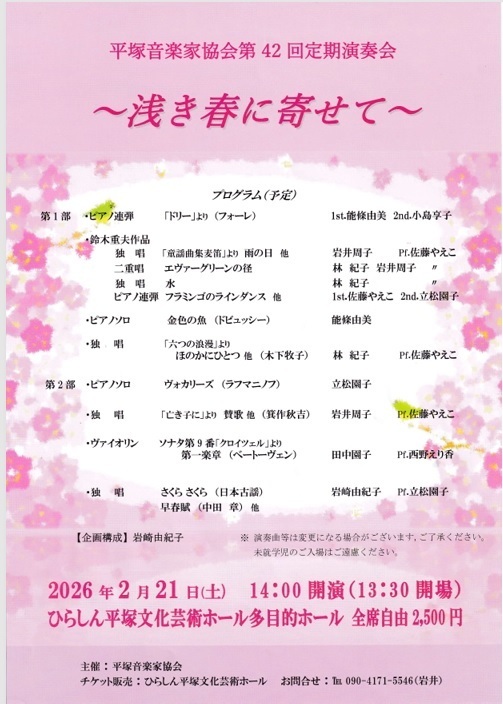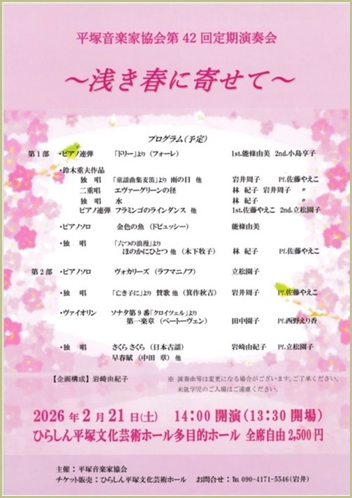 平塚音楽協会〜浅き春に寄せて〜 New!