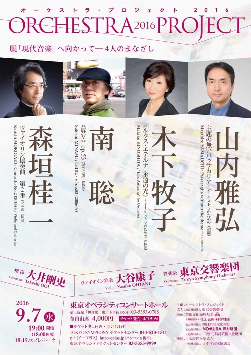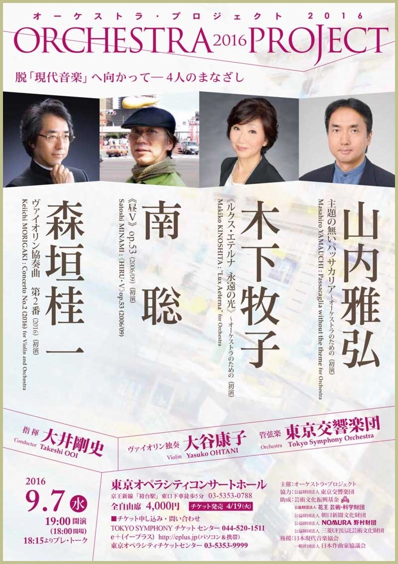 ●指揮 鈴木恵里奈 ●副指揮 小林滉三 ●管弦楽 アンサンブル・ノマド(Vn.野口千代光 Va.甲斐史子 Vc.松本卓以 Fl.木ノ脇道元 Cl.菊地秀夫 Hn.萩原顕彰 Perc.宮本典子 Pf.中川賢一