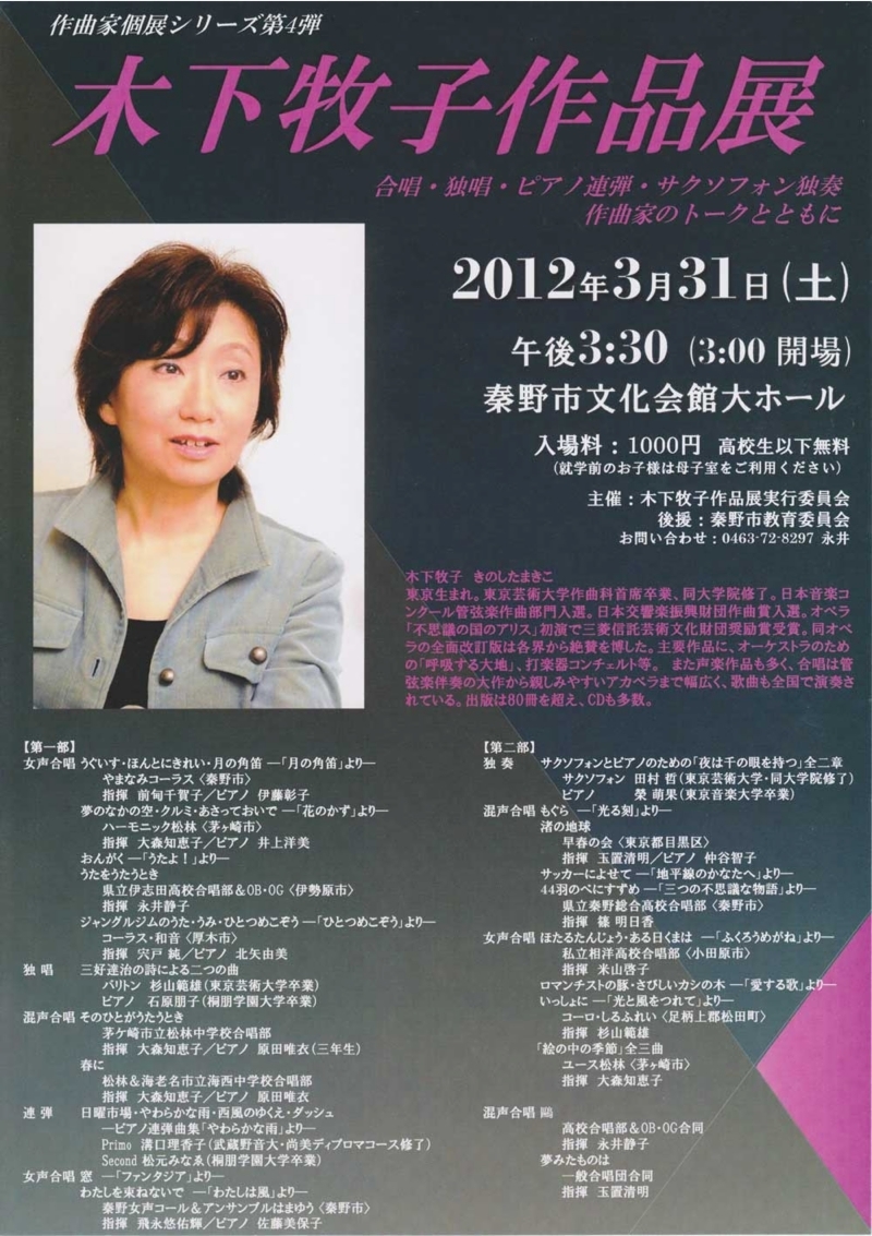 作曲家個展シリーズ第4弾 木下牧子作品展